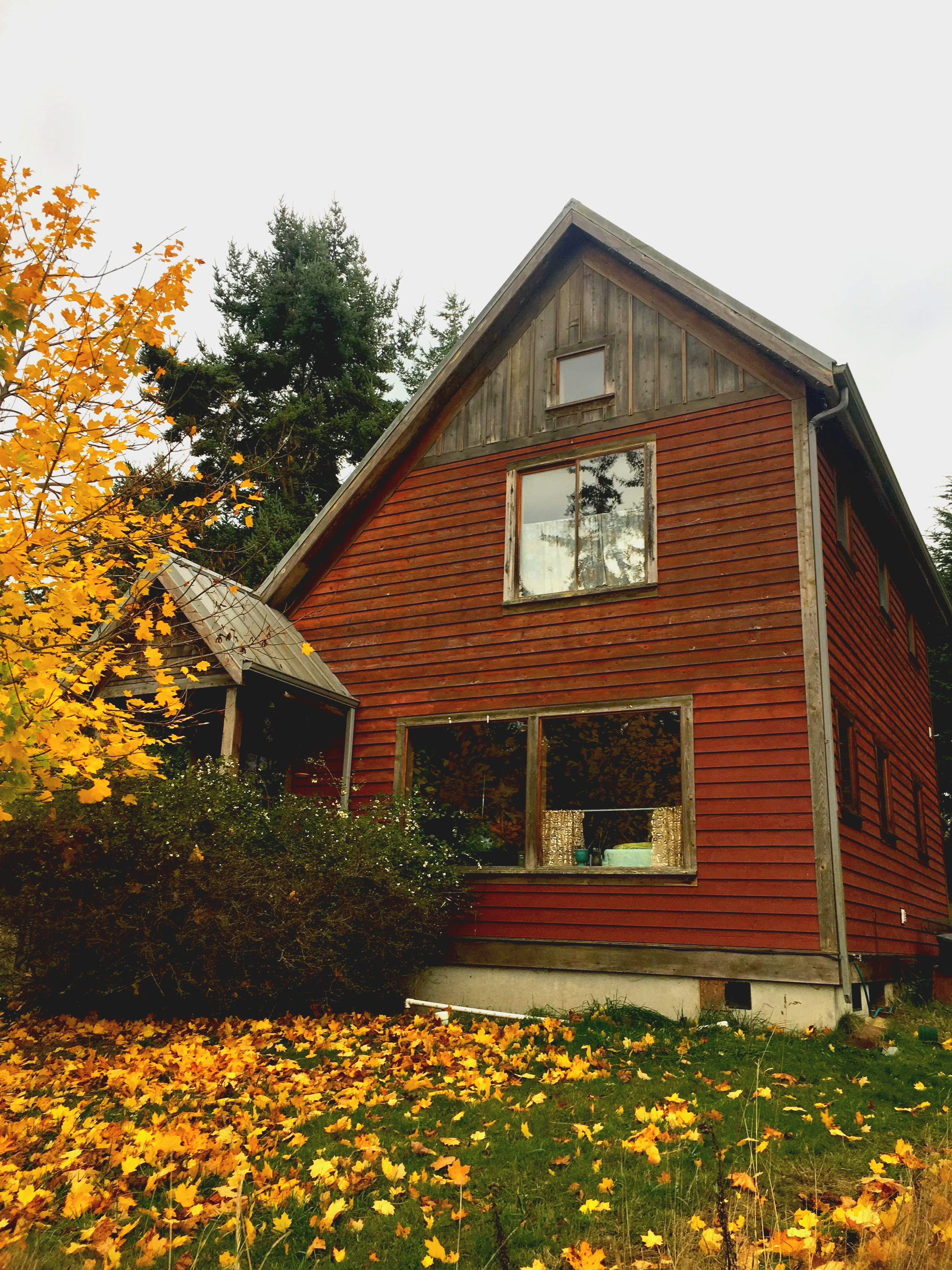 This 1,100 square foot saltbox style house sits on the edge of a protected wildlife buffer near a bluff overlooking the Strait of Juan de Fuca. The design was originally inspired by a tall, thin cabin in the facing field.